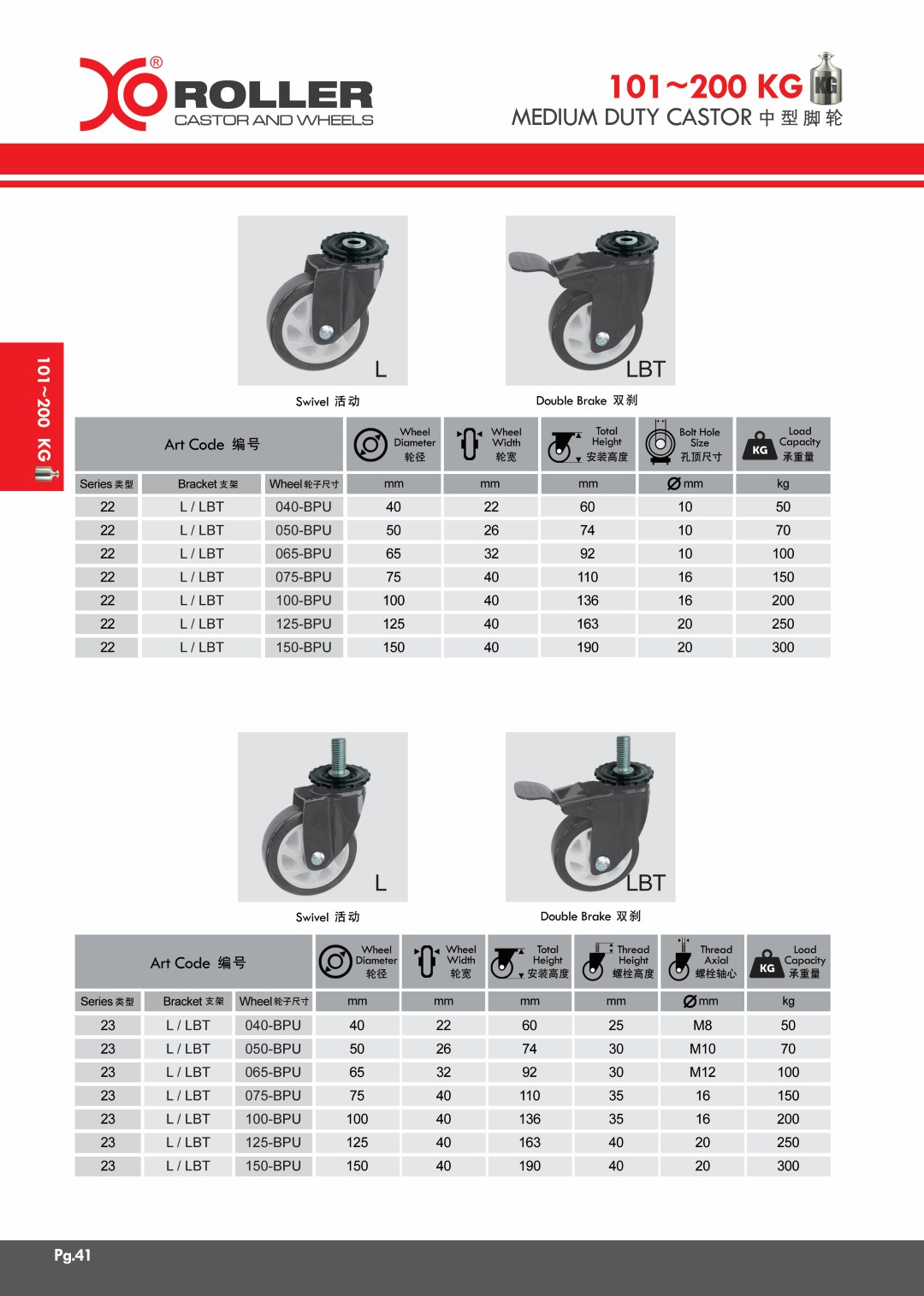 page 41Medium Duty Castors